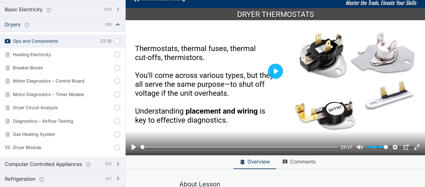 Your learning journey extends far beyond our core program. At Appliance Tech Academy, we're dedicated to keeping your skills sharp as you learn dryer repair online, with a constant stream of new content. Have a tough question on a dryer repair? We often create videos based on real tech inquiries! You'll find a wealth of free resources on our YouTube channel, along with exclusive content for our paid members who are serious about learning dryer repair online. We're committed to supporting your success at every stage of your career.